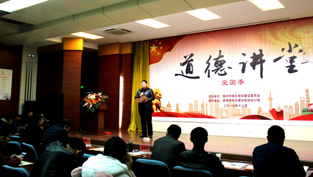 為了進(jìn)一步培育和踐行社會主義核心價值觀,夯實公民思想道德教育活動平臺,大力宣傳學(xué)習(xí)道德模范和身邊好人的感人事跡,不斷提高文明單位創(chuàng)建水平, 2017年12月8日下午在市規(guī)劃建設(shè)委附屬二樓會議中心,由市城鄉(xiāng)規(guī)劃建設(shè)委員會主辦、市城鄉(xiāng)規(guī)劃設(shè)計院承辦的市規(guī)建系統(tǒng)2017年度“道德講堂——愛國季”活動。市規(guī)建委機(jī)關(guān)、在建設(shè)大廈委屬二級機(jī)構(gòu)在崗?fù)尽⑵渌瘜賳挝淮砉?20多人參加,市規(guī)建委主任、委黨組書記朱林及部分在崗委領(lǐng)導(dǎo)共同參加本次講堂活動。